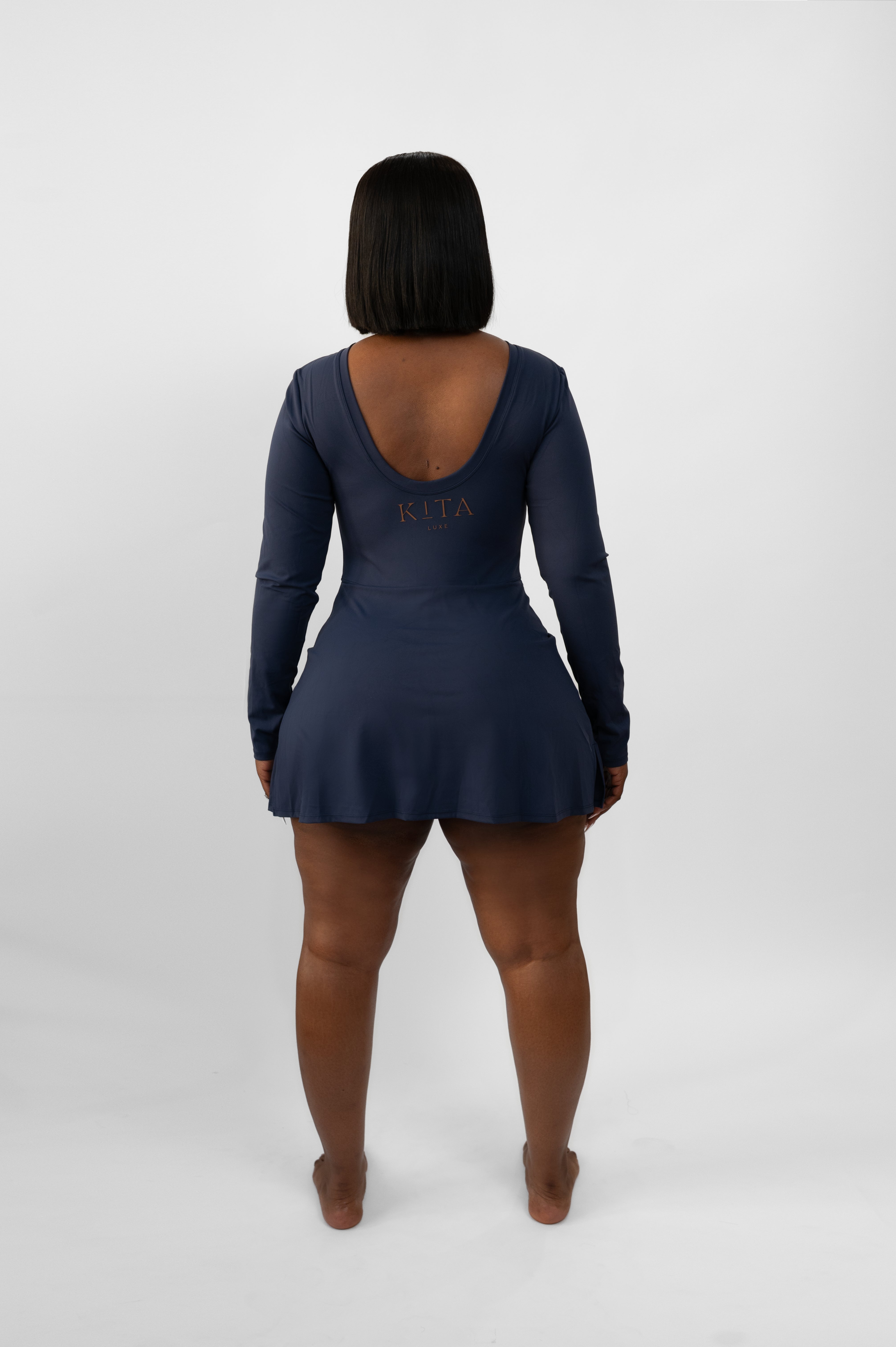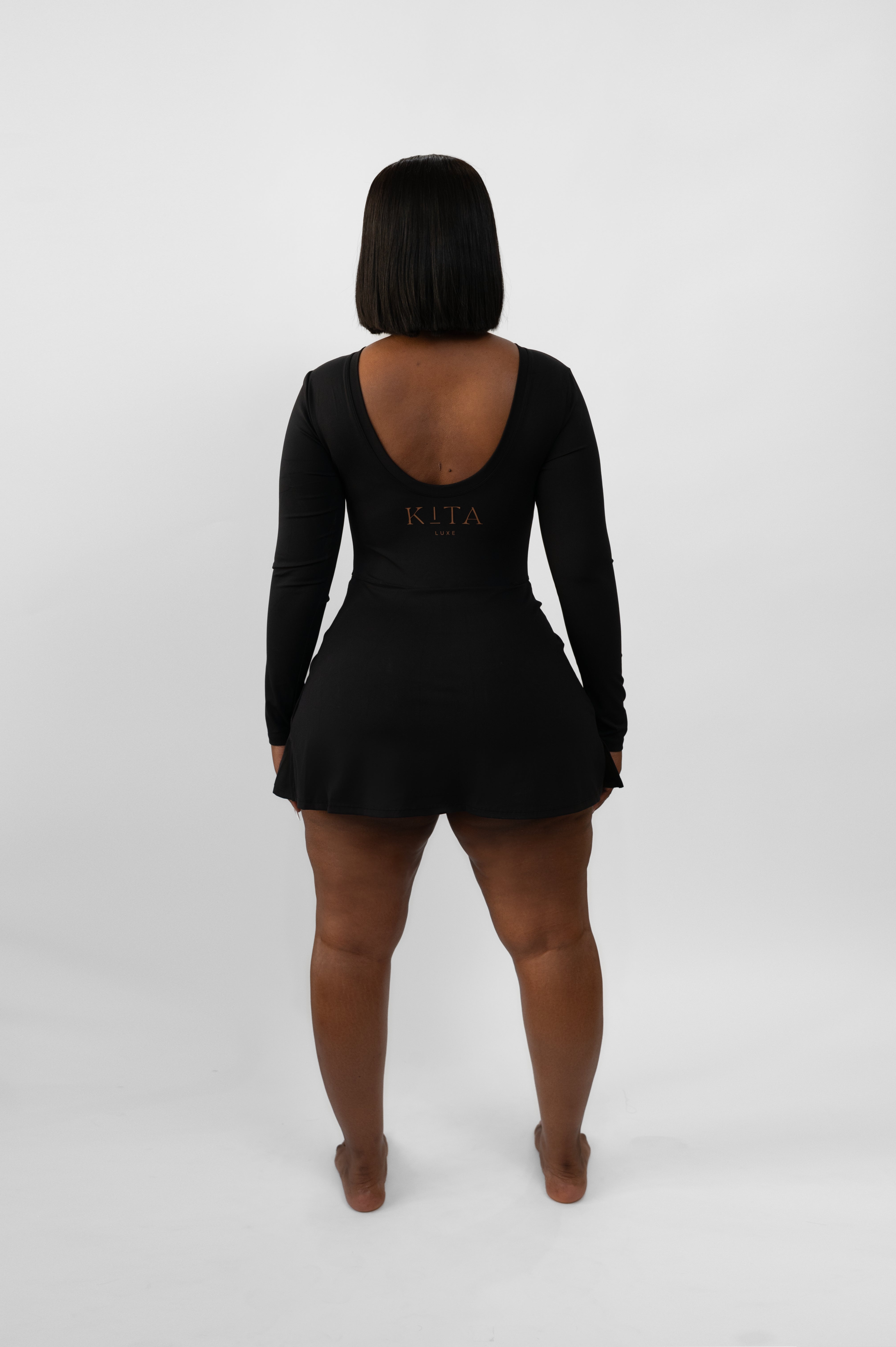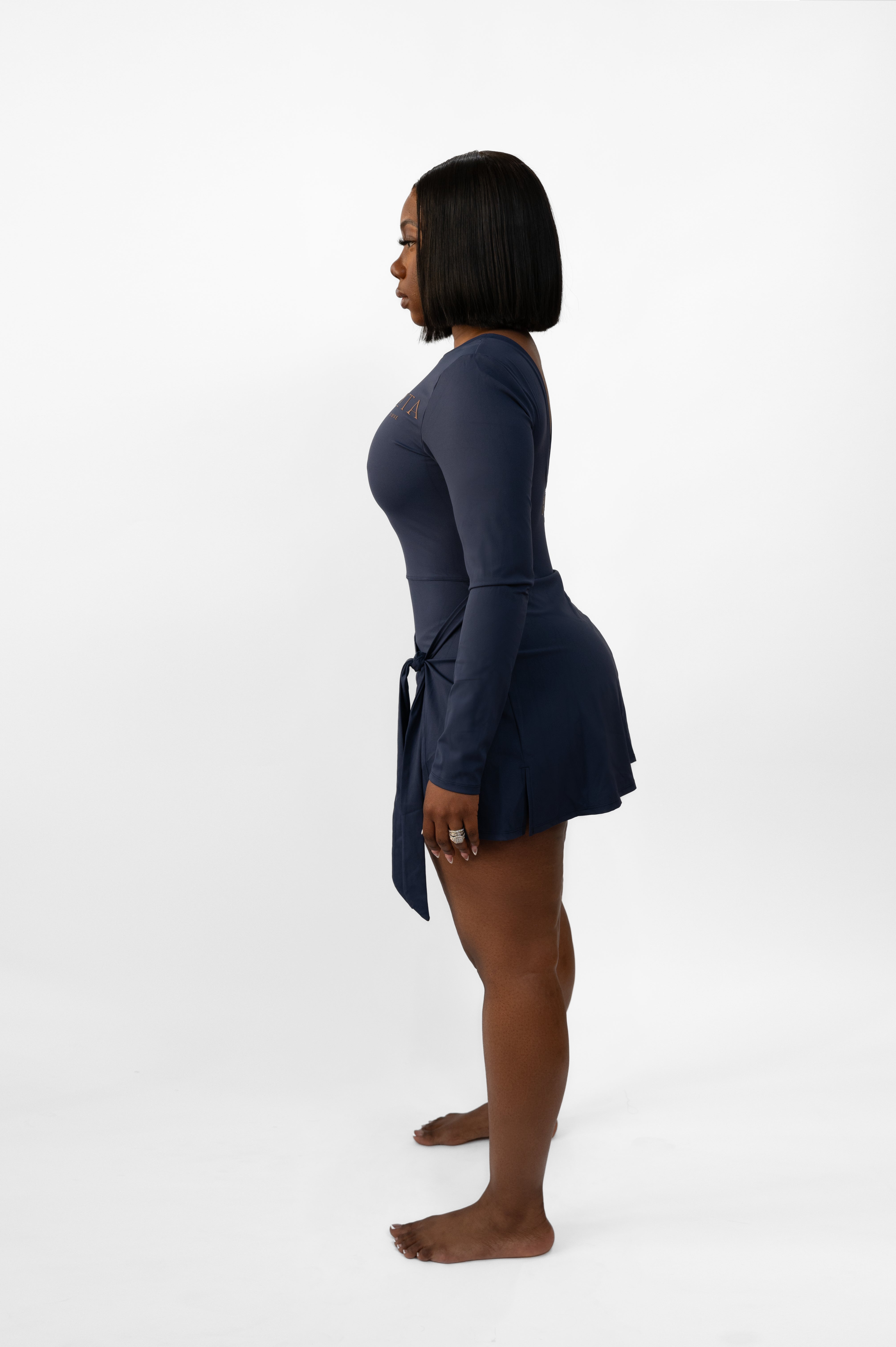 •  Breathable long sleeve solid color split binding slim tennis dress Unique Design Points: •  U-type hollow back design •  Sculpting fabric to enhance your natural shape + split strap design •  Bowknot design is fashionable + fake two-peice design •  Flattering A-line design with built-in anti-exposure shorts for extra support  and convenient •  Pleasted design better shows your charming...
