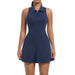• Breathable polo collar half zipper golf and tennis a line pleated dress